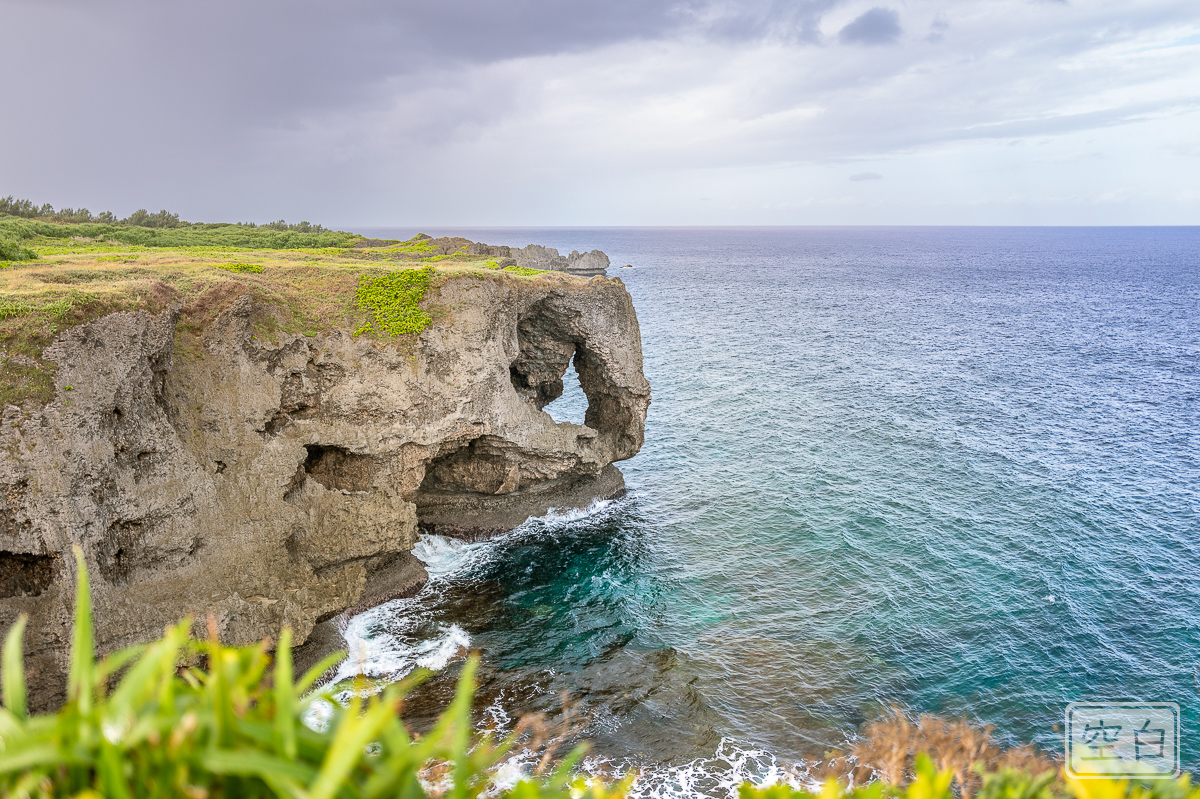 Der letzte Halt war Cape Hedo (jap. 辺戸岬), der nördlichste Punkt der Hauptinsel Okinawa. Hier bietet sich ein weiter Blick auf das Meer und die zerklüftete Küste. Leider hatten wir Pech mit dem Wetter, es regnete stark, sodass die Aussicht eher bescheiden war.